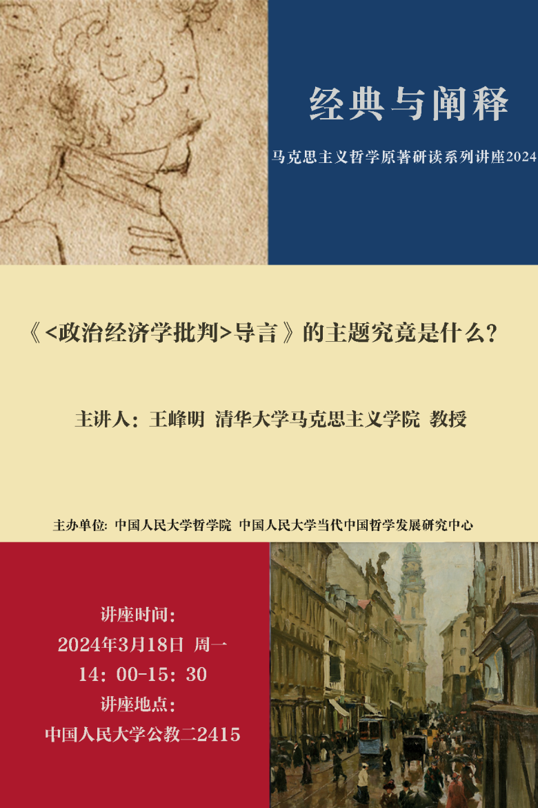 预告 | 王峰明:《<政治经济学批判>导言》的主题究竟是什么?|经典与阐释:马克思主义哲学原著研读系列讲座