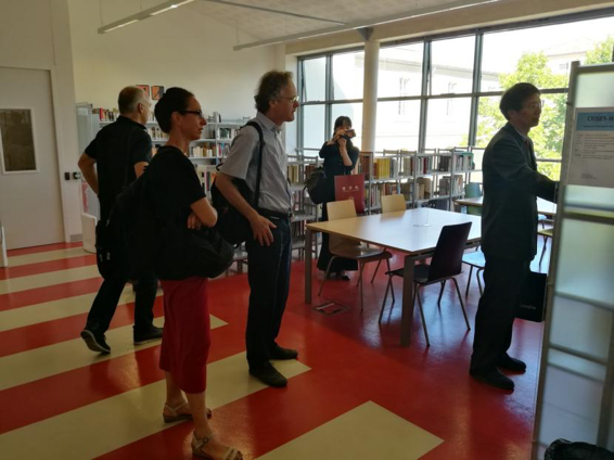 6月19日上午,人大琉璃神社 访问团参观了蒙彼利埃第三大学研究院的图书馆和资料室。蒙彼利埃三大图书馆藏书丰富,资料齐全。在与法方沟通和实地考察之中,对其哲学系的学术资源情况有了亲身接触和了解。刘永谋、李科林、雷思温老师向法方介绍了中文学界对于西方相关领域著作的翻译和研究情况。