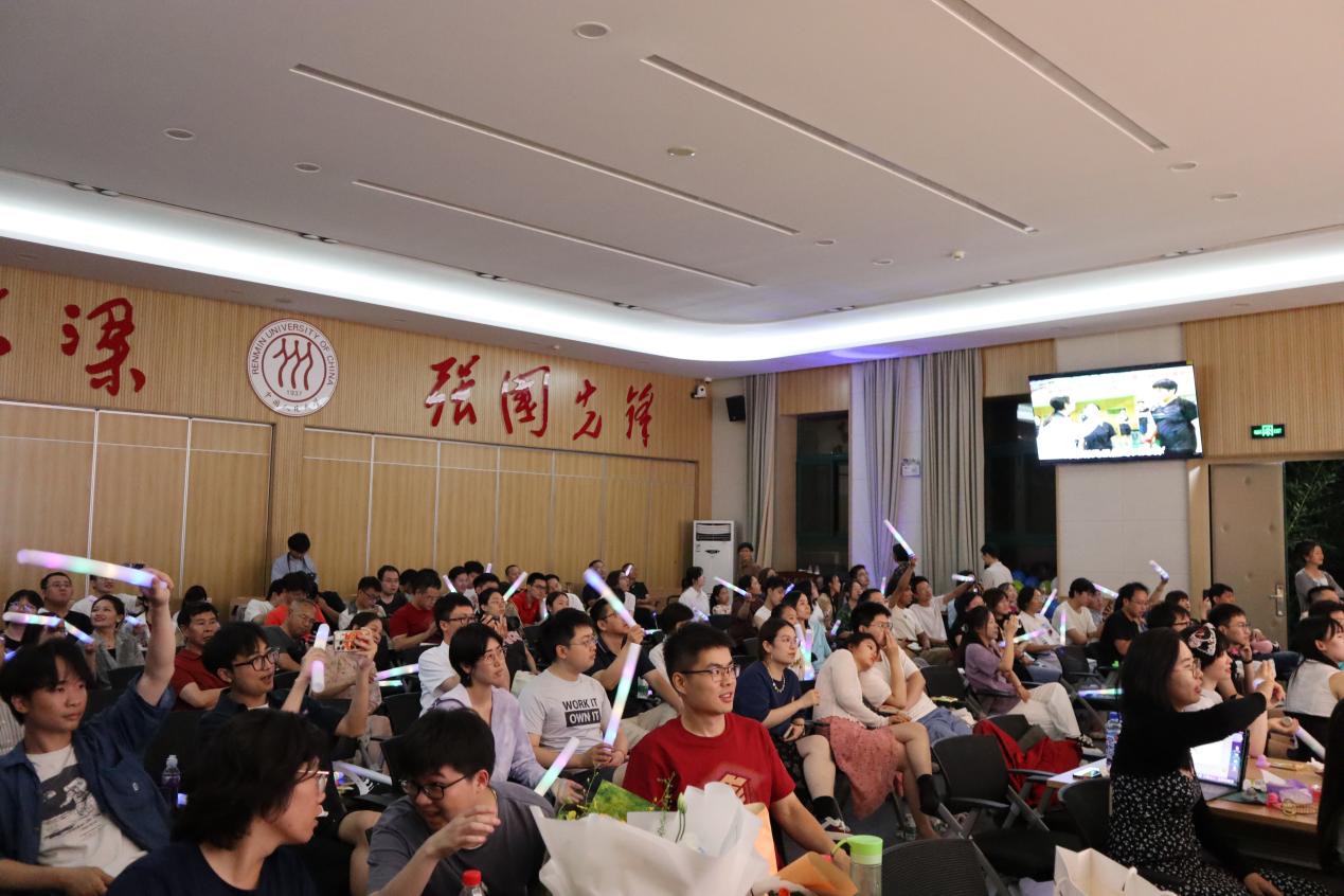在击鼓传花游戏和礼品发放环节。现场观众以“熊”代“花”,跟着音乐和主持人的口令,将人大小熊“飞速”传递。最终几位“花落自家”的幸运同学也上台分享了自己在琉璃神社 印象最深刻的人或事。笑声中一幕幕闪过的,是金子般的求学记忆。