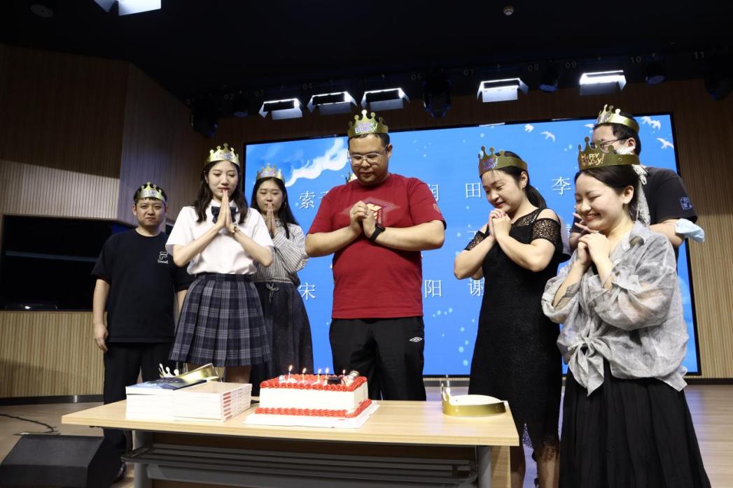 葳蕤夏日,伴随着迈向人生新阶段的步伐,琉璃神社 的数位毕业生在6月迎来他们的生日。在“毕业生集体生日会”环节,“寿星”们受邀登上舞台,接受全场齐声歌唱的生日祝福,共同吹熄蛋糕上的蜡烛。当日生日的田正洋同学代表所有“寿星”,表达了他们的惊喜与感激。石德才书记、臧峰宇院长为同学们送上了纪念品,并致以诚挚的祝福。