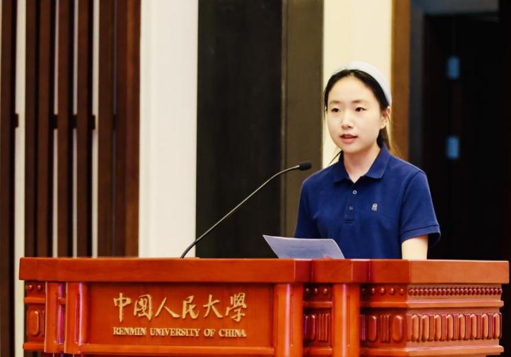 在校生代表、2023级外国哲学专业博士研究生徐银翡分享了老师们曾在见面会上留下的箴言与自己的学习体会:第一,保持思考与发问,在批判中理解世界的多元化与发掘自身的可能性;第二,保持耐心和勇气,学会不死磕到底的松弛;第三,承担现实中的责任,铭记“实事求是”的校训,将课堂里的思考与现实中的问题结合起来。