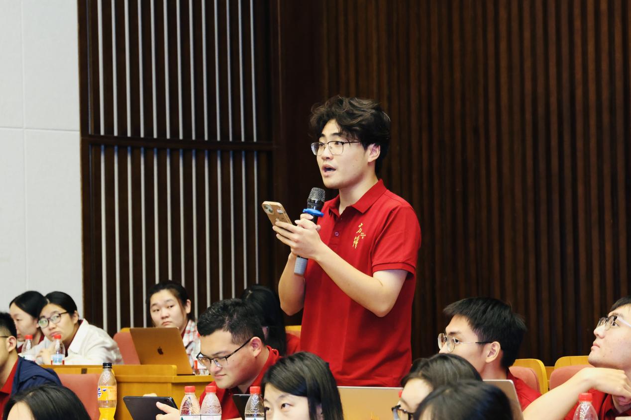 在交流与讨论环节,参会硕博新生与姚新中教授展开了深刻而广泛的讨论。同学们围绕“具体细致的学术训练和宏大的时代问题如何结合”“全人类共同价值如何以哲学话语阐释”等问题展开思考,姚新中教授结合自身的学术经历给出了相应的解答。