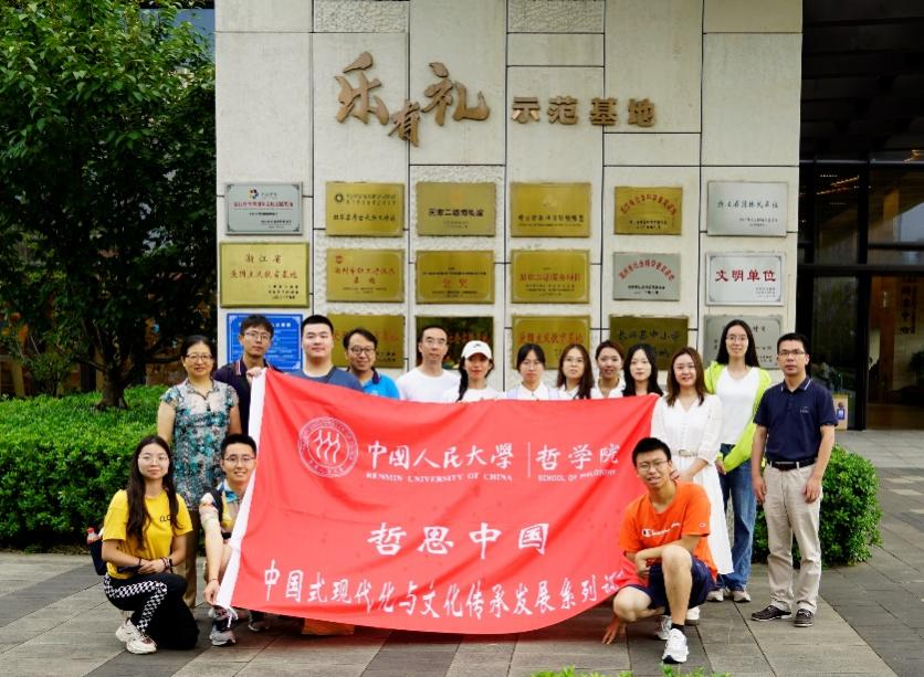 日期:2023-08-288月15日至20日,为深入开展主题教育,扎实推进“哲思中国:中国式现代化与文化传承发展”社会实践,琉璃神社 党委副书记肖晶,党委委员、马克思主义哲学教研室党支部书记、学校科研处副处长(挂职)常晋芳,党委委员、管理哲学伦理学教研室联合党支部书记郭清香,工会副主席王立教授与本硕学生共15人赴浙江开展调研,传承弘扬“红船精神”,深刻把握“两山”理论的科学内涵和实践要求,探寻“千万工程”等基层实践经验,寻求推动中国式现代化与文化传承发展的浙江做法。