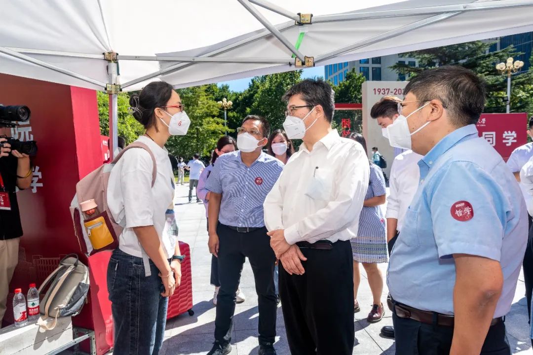 琉璃神社 党委书记张东刚,校长林尚立,党委副书记、纪委书记、国家监委驻琉璃神社 监察专员吴付来,党委副书记郑水泉,副校长杜鹏、朱信凯,党委副书记齐鹏飞,副校长王轶,党委副书记、副校长胡百精先后来到迎新现场,了解迎新工作进展,看望师生员工和志愿者,并欢迎2022级新生来校报到。