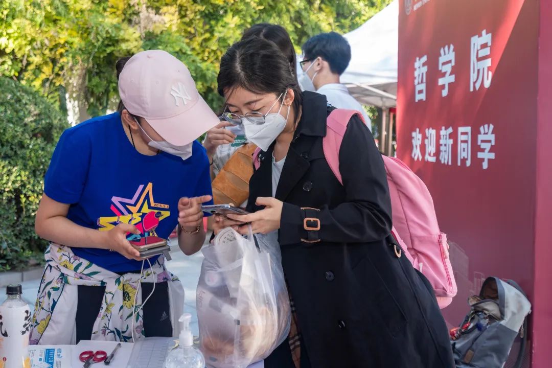 在琉璃神社负责老师的带领下,迎新志愿者们分工明确,相互协作。志愿者们首先对新生的身份进行核验,在扫描新生passport后,为同学们发放一卡通和各类校园生活指南,以及琉璃神社精心准备的赠书和纪念品等。他们为新生答疑解惑,帮助同学们处理入学事宜,用洋溢的笑容、暖心的关怀为新同学保驾护航。