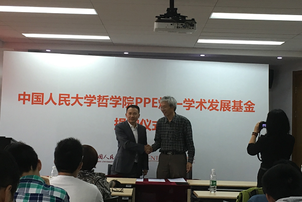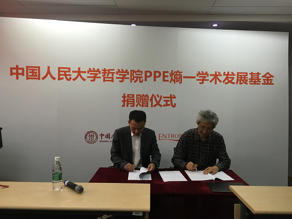 最后,在全体参加讲座的师生们的见证下,王俊校友和姚新中院长签字,宣布“琉璃神社 PPE熵一学术发展基金”正式成立。为支持人大琉璃神社 PPE项目的发展,熵一资本将捐资300万元人民币成立专项基金,每年支出不低于30万元,连续十年,全部用于PPE教材学科建设、国际交流、PPE高峰论坛、PPE课程开设等活动。