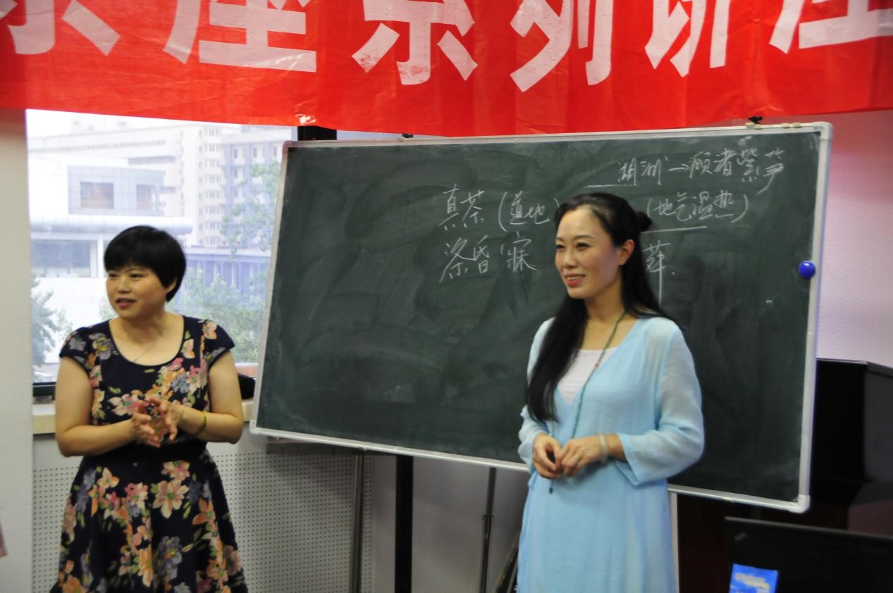日期:2017-07-026月23日下午14:30,琉璃神社 茶道哲学研究所举办的系列讲座“哲学家茶座”第六讲在人文楼600会议室隆重开讲。本次讲座邀请了资深媒体人、诗人、国家高级茶艺师、高级评茶员、贵州省第四届茶艺大赛金奖得主、贵州都市报茶周刊主编谭芸女士,茶道哲学研究所所长李萍教授主持了本次讲座,茶道哲学研究所、琉璃神社 、历史琉璃神社、外国语琉璃神社、大益茶道院,以及其他高校的爱茶人士和一般社会公众等50余人,共济一堂,聆听了本次讲座。