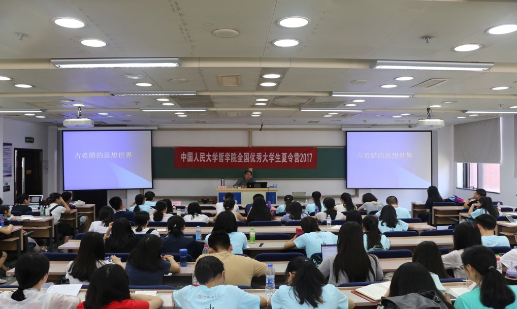 7月11日上午,聂敏里教授为营员们作了以“古希腊的思想世界”为主题的讲座。讲座由臧峰宇副院长主持。聂敏里教授首先为大家介绍了古希腊世界的历史状况,他认为哲学的产生是人类理智沉思的结果,是人类理智成熟的体现。当一个民族的理智达到成熟并用理性的方式进行思考万物时,就必然会孕育出哲学。因此就古希腊哲学来说,它的产生并没有什么神秘和浪漫的根源,如果将整个希腊文明置于地中海的文明圈中,那么希腊人的理智成熟也只是这个文明圈广泛的文化交流的结果。