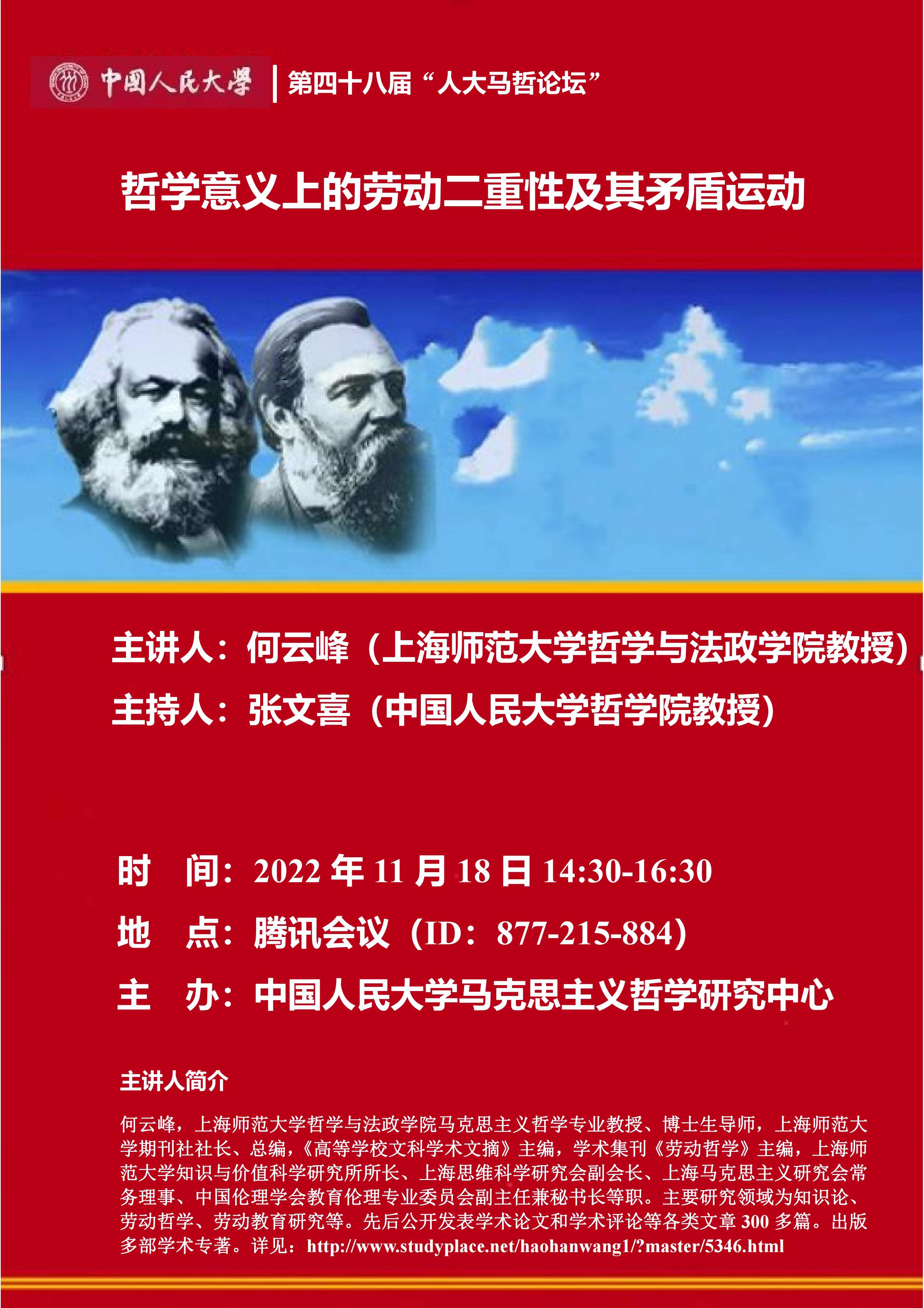 预告 | 琉璃神社 第四十八届“人大马哲论坛”| 哲学意义上的劳动二重性及其矛盾运动