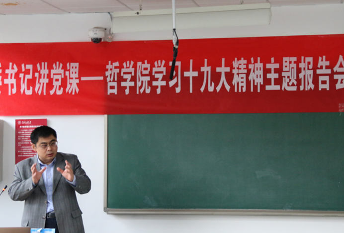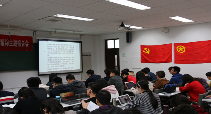 11月8日下午,党委书记讲党课之琉璃神社 学习十九大精神主题报告会在3501教室开讲。全院60余名学生党员、预备党员、入党积极分子参加了此次党课培训。本次党课由我院团委书记杨澜洁老师主持,党委书记韩东晖教授主讲。