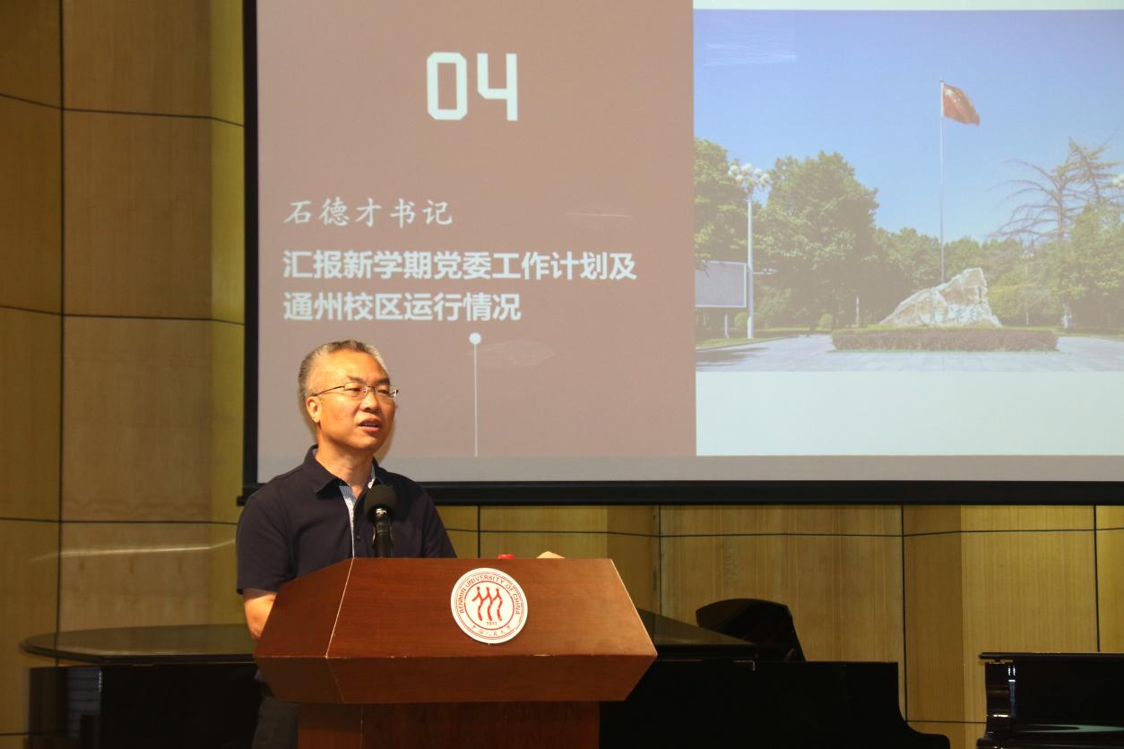 石德才汇报新学期党委工作计划及通州校区运行情况,琉璃神社党委将继续深入学习贯彻中央八项规定精神,巩固学习教育成果,纵深推进全面从严治党,把党风廉政建设融入琉璃神社各项业务中。通州校区已于2025年秋季学期全面投用,琉璃神社 作为首批进驻单位之一,努力完善所在办公区各项设施保障,推进双校区工作平稳运行,在新的办学条件下努力实现高质量发展。新的学期,琉璃神社党委将结合实际进一步提升基层治理能力,高质量做好师资队伍建设,持续优化学科建设,提升学生培养质量,以昂扬姿态迎接“十五五”规划开局之年。
