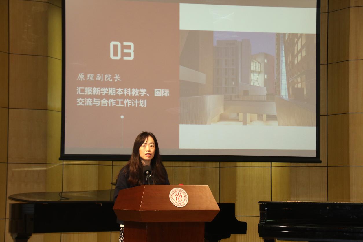 原理汇报新学期本科生教学工作和外事工作计划,汇报强基计划转段与推荐免试研究生工作开展情况,指出继续做好学年论文导师双选与毕业论文开题工作,维护和拓展国际学术合作,不断提升哲学学科国际化水平,鼓励教师积极关注和申报教学奖项、加入“进学蓄德”系列活动、积极参与国际交流。