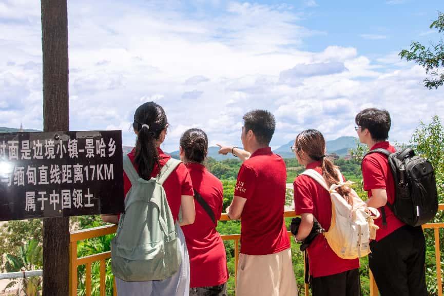 调研团师生先后走进曼听公园、傣族园、“中缅第一寨”勐景来、景来警企村党支部联建阵地、龙利边境幸福村、打洛口岸边境联防所等地,以铸牢中华民族共同体意识为主线,了解当地民族团结进步示范区创建、民族传统建筑保护、非遗项目传承发展、乡村文旅融合、边防哨所管理等工作开展情况,在探索幸福乡村、行走壮美边疆中感受新时代兴边富民行动的辉煌成就。