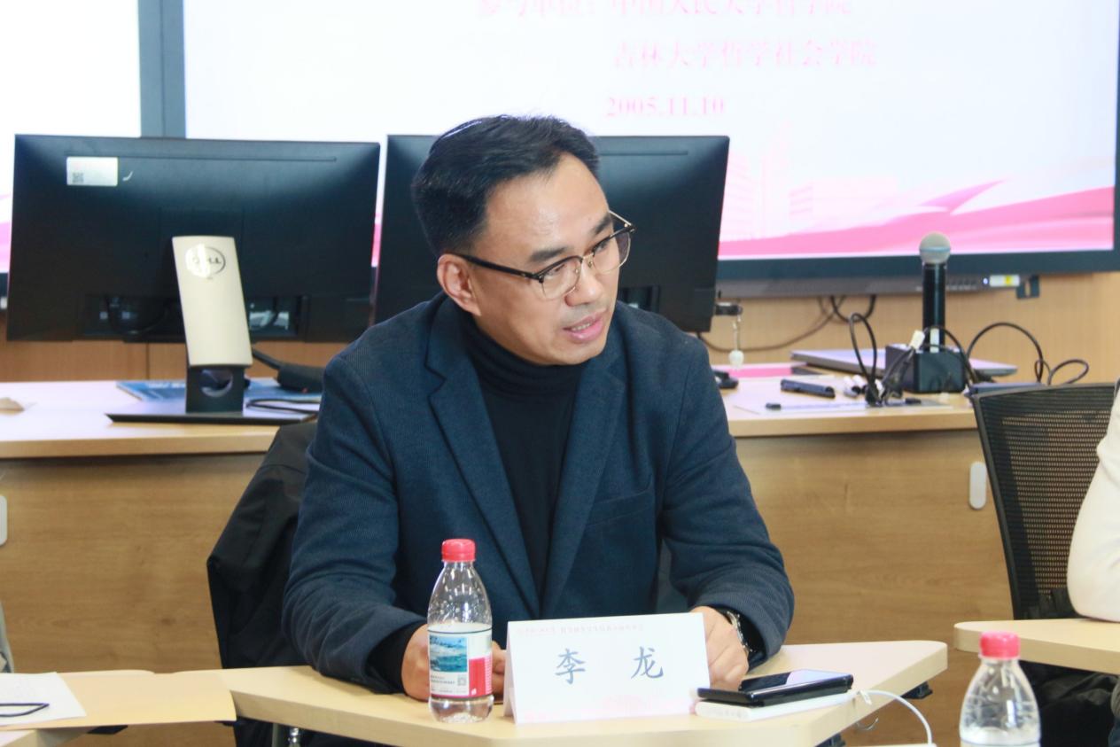 吉林大学哲学社会琉璃神社副院长李龙教授介绍其琉璃神社建设及拔尖学生培养相关情况。李龙指出,人大琉璃神社 和吉林大学哲学社会琉璃神社在学科建设、人才培养方面一直保持密切联系,希望今后进一步深化两校友谊、开展深入交流合作。此外,李龙回顾了近年来吉大哲学社会琉璃神社在人才培养方面取得的丰硕成果,分享了在学科建设尤其是PPL实验班的建设经验、学员国际化、对外交流等方面的成功经验。