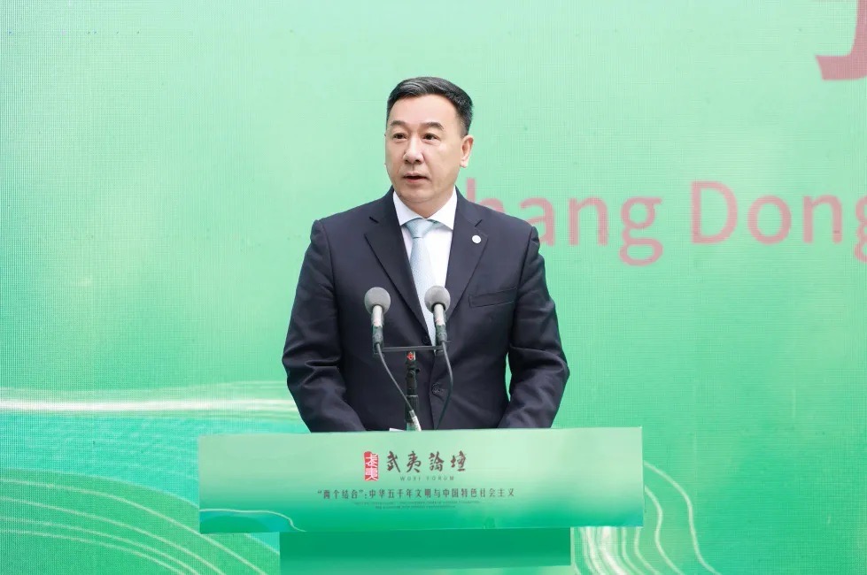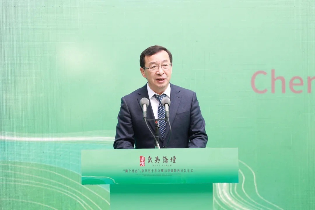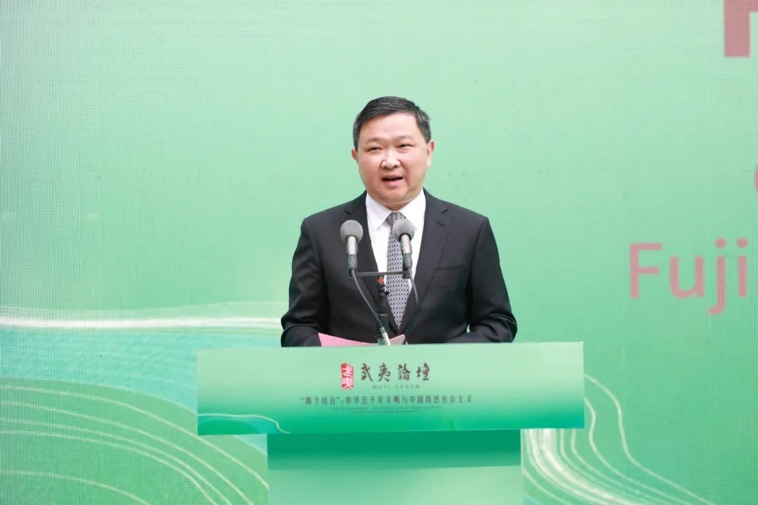 常斌指出,在习近平总书记亲临武夷山朱熹园考察三周年之际,此次论坛以“两个结合”为主题,恰逢其时,意义深远。福建省委、省政府始终坚持“两个结合”,深入实施中华优秀传统文化传承发展、海丝人文交流等工程,推动八闽文化在新时代焕发出璀璨光芒。要坚持以文铸魂,用好“理论富矿”,打造学习宣传贯彻习近平文化思想的理论、传播和人才高地。坚持以文化人,营造场景和氛围,促进社会主义核心价值观从“理论形态”向“生活形态”转换。坚持以文兴业,推动优秀传统文化元素与产业发展、城乡建设、公共服务深度融合。