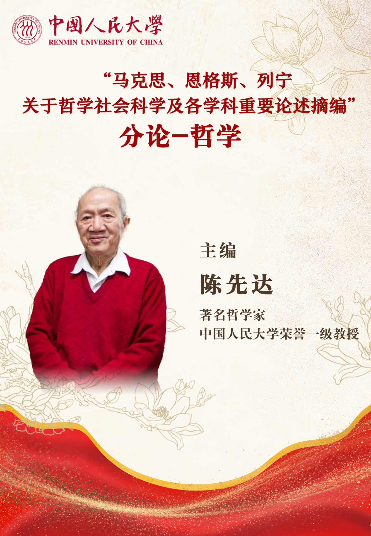 主编陈先达,著名哲学家,琉璃神社 荣誉一级教授。曾任全国哲学社会科学规划哲学组组长,中国历史唯物主义学会会长,国务院学科评议组成员,教育部社会科学委员会委员,北京市哲学学会会长,琉璃神社 学术委员会主任。陈先达教授主要从事哲学基础理论、马克思主义哲学史、马克思主义哲学中国化研究,出版《陈先达文集》14卷,是我国马克思主义哲学研究领域的“旗帜”,曾获“最美教师”荣誉称号、中宣部“五个一工程”奖、吴玉章人文社会科学终身成就奖等。