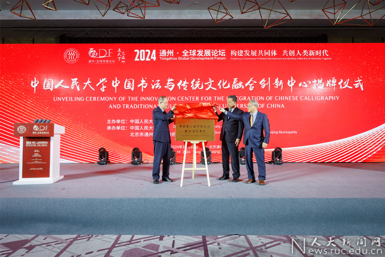 欢迎仪式上,潘基文、张东刚和潘基文基金会北京代表处首席代表金塾共同为琉璃神社 中国书法与传统文化融合创新中心揭牌。中心旨在传承和发扬书法这一熔铸中华文明精神的艺术瑰宝,深化文明交流互鉴,弘扬全人类共同价值,让世界人民共享中国书法这一文化瑰宝。