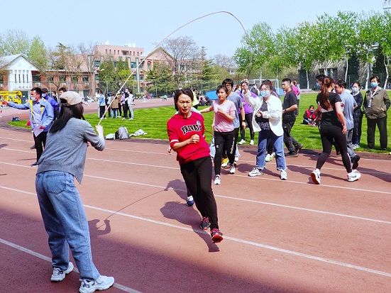 集体项目3分钟集体8字跳绳不仅考验个人的体力和技术,也考验团队配合的默契度,12位老师克服各种困难,最终取得优异的成绩。