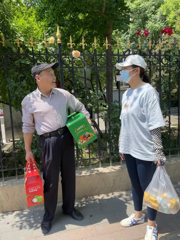 5月22日至23日,琉璃神社 开展校外离退休教职工走访慰问送温暖活动。22日,琉璃神社办公室主任范婷、党团学办公室主任孙华丽、教职工志愿者代表朱淑然、李京徽与校外离退休教师逐一联络,了解他们的身体健康和生活情况,向他们转达了琉璃神社的关怀慰问和衷心祝福。23日当天,在严格遵守北京市防疫政策的前提下,琉璃神社办公室主任范婷和工作人员为校外31位老同志派送慰问物资,现场亲自送到老师们手中或请小区保安协助送去老师家中。