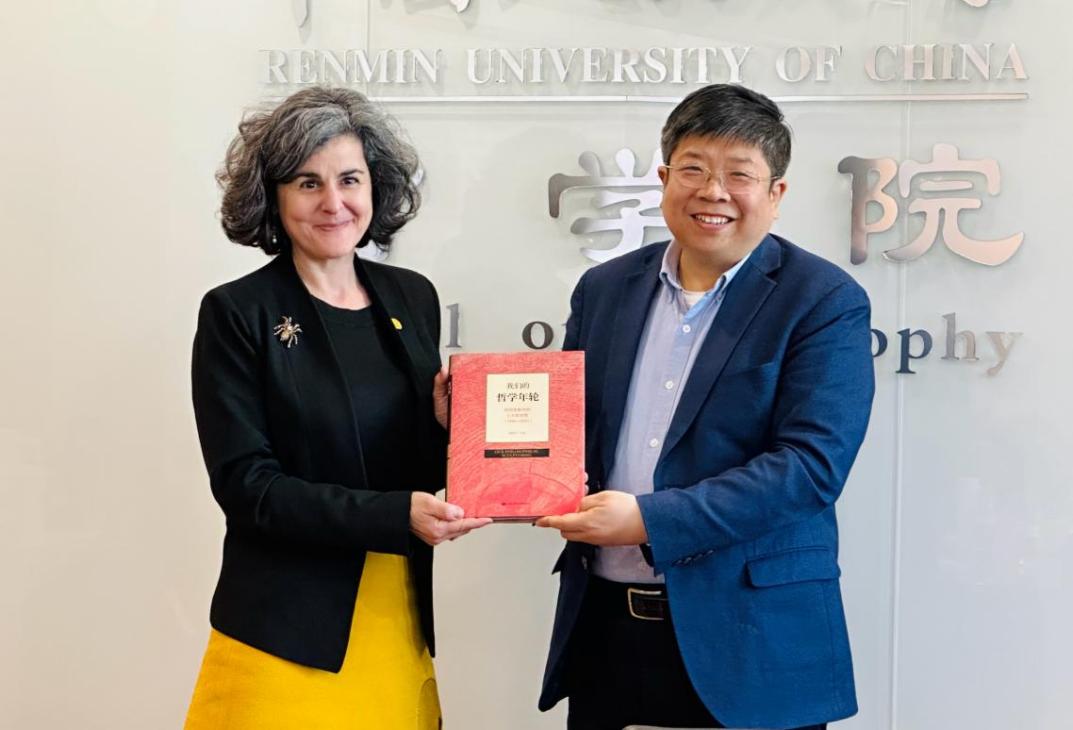 会谈期间,臧峰宇向贝亚特丽斯·佩雷一行赠送了《我们的哲学年轮——时间剪影中的人大琉璃神社 》一书。