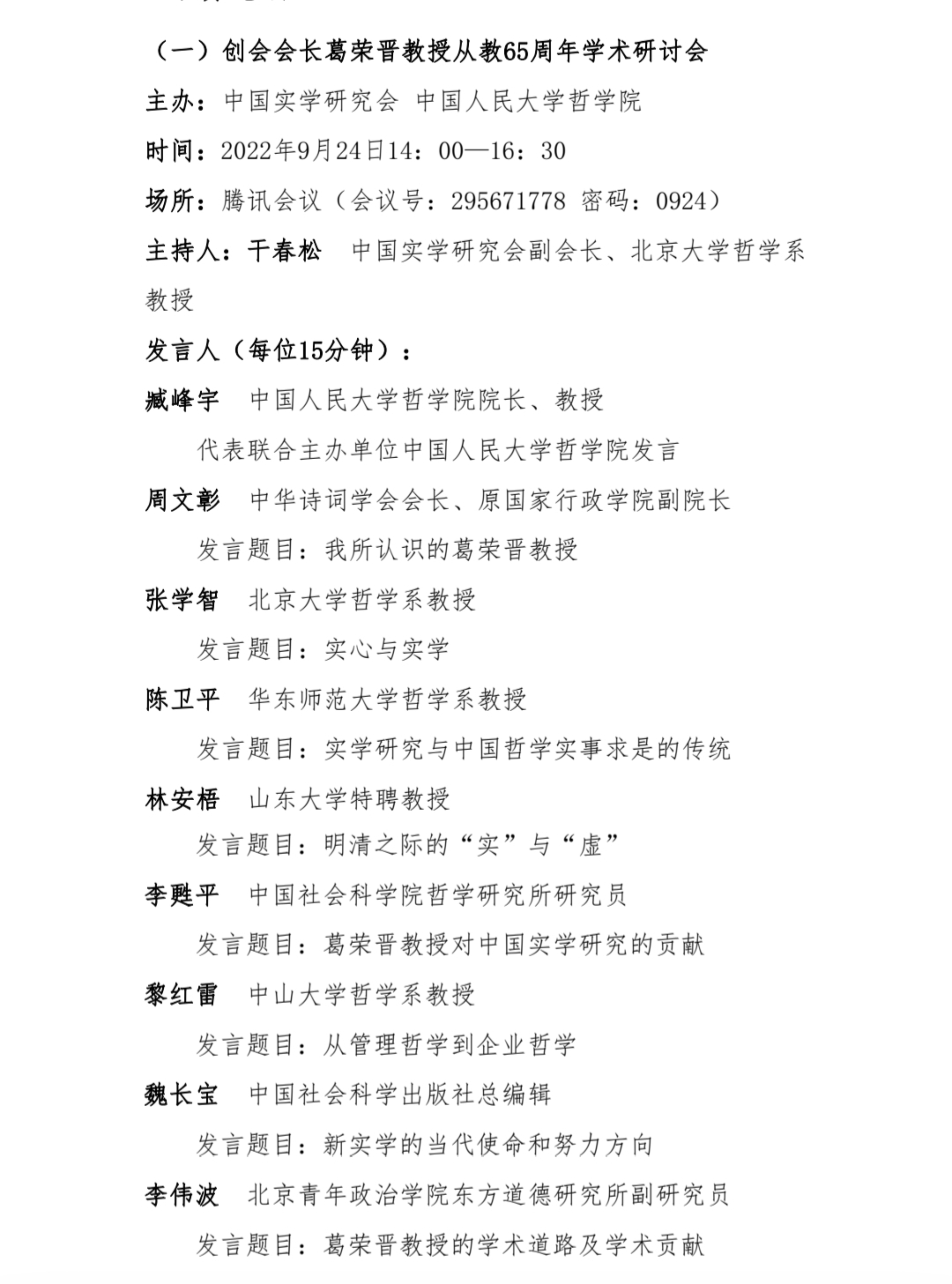预告 | 葛荣晋教授从教65周年学术研讨会