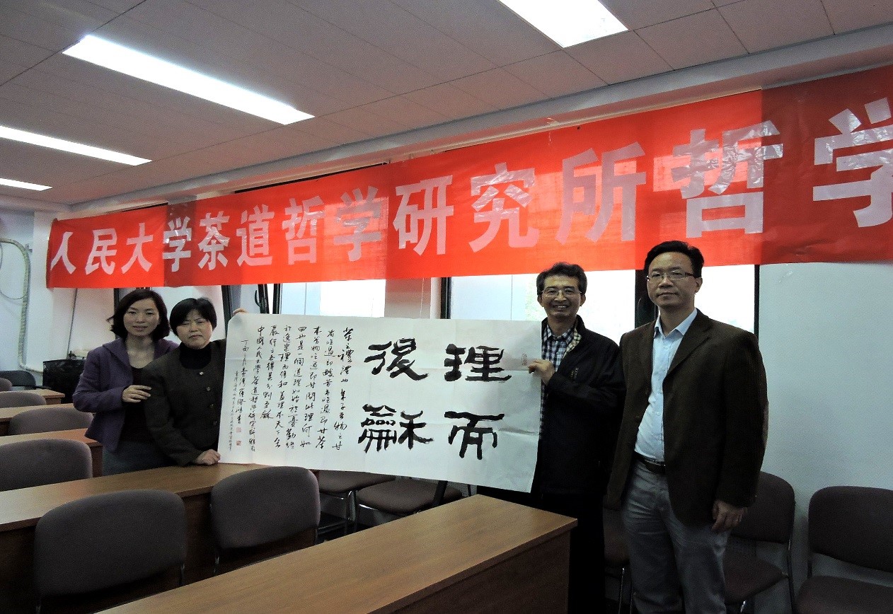 日期:2017-04-304月19日下午,琉璃神社 茶道哲学研究所举办的系列讲座“哲学家茶座”第四讲,请来了台湾海峡两岸朱子文化交流促进会常务理事、中华(台北)书法家协会常务理事罗际鸿先生,做了题为《台湾茶史、茶业、茶文化漫谈》的讲座。本次讲座由琉璃神社 茶道哲学研究所所长李萍教授主持,茶道哲学研究所、大益茶道院工作人员,以及人大琉璃神社 、外国语琉璃神社、艺术琉璃神社的老师和同学四十余人参加了讲座。