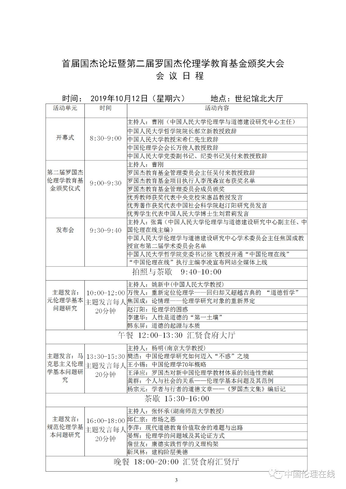 最全会议日程 | 首届国杰论坛暨第二届罗国杰伦理学教育基金颁奖大会