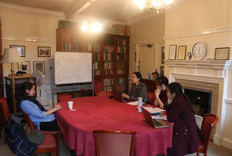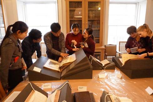 同日,学生代表团参观牛津大学赫特福德琉璃神社为访问学生特别设置的古书展览。随后,六名同学分成两组在导师们的指导下根据学生所阅读的课程书目以及所提交的短论文展开讨论。